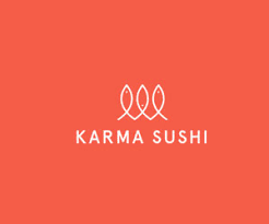 Karma Sushi- The red & white is connoting the flag of Japan although it also is in the centre like the red circle of the flag but inverted colours. The notion of karma is connoted in the eyes of the fishes as they are in different positions. Also the logo is small and bite size just like sushi, also the logo is on top of the name which is simular to sushi as that is the rice and this is normally underneath the fish.
